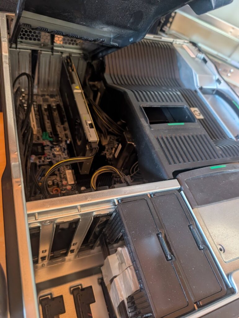 Bauen wir die beiden HDDs aus und ersetzen sie durch zwei SSDs. Die laufen im Spiegelmodus, wenn eine wegfliegt, hat die zweite alles drauf und der Server läuft unbeeindruckt weiter.